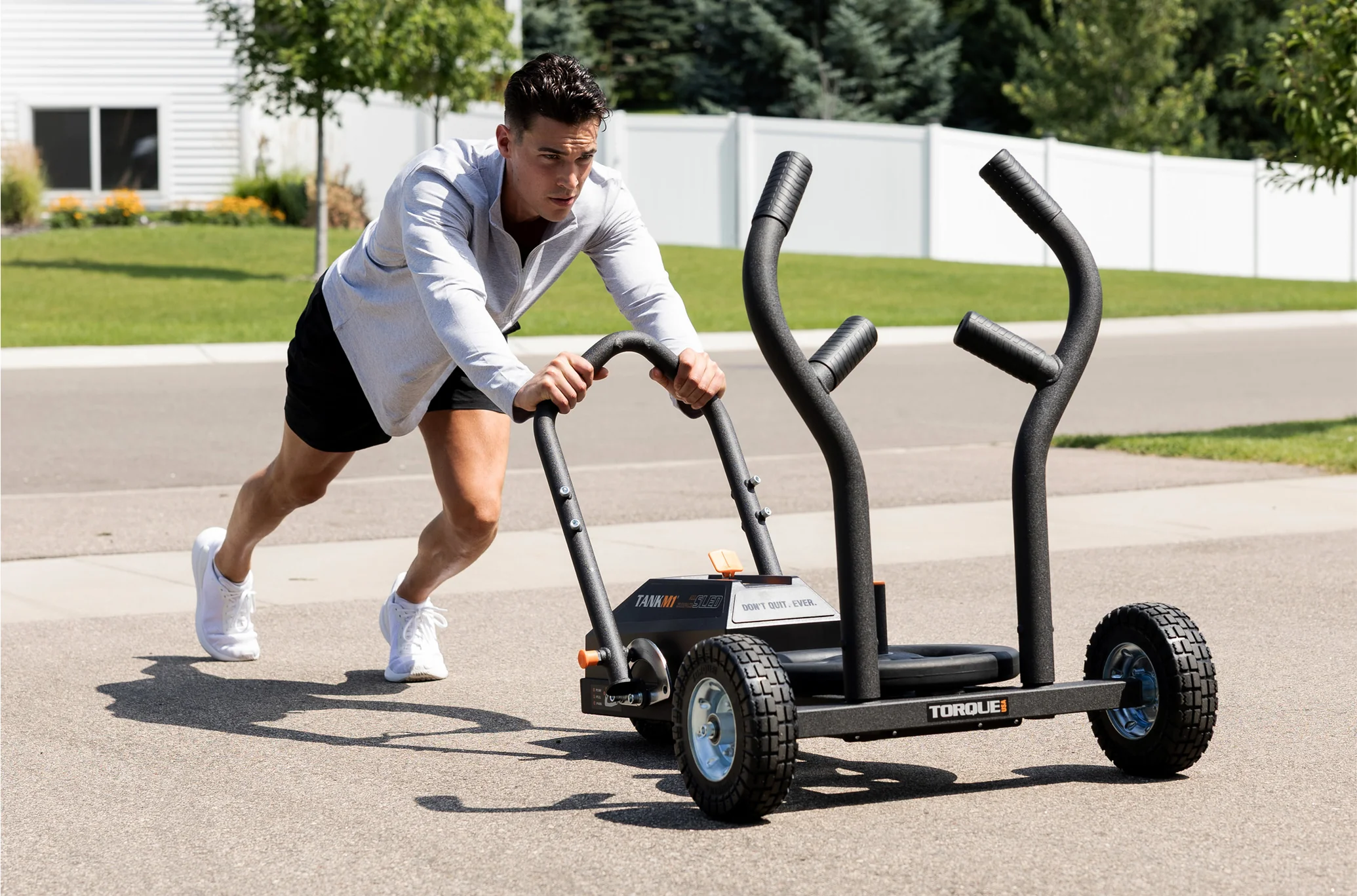 Build steady leg strength and endurance. The sled weight can be adjusted so anyone can push with confidence and have fun.